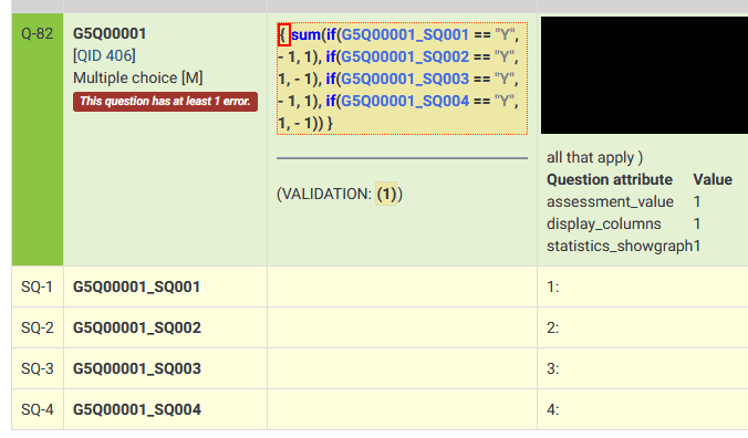 {sum(if(G5Q00001_SQ001 == "1", -1, 1), if(G5Q00001_SQ002 == "1", 1, -1), if(G5Q00001_SQ003 == "1", -1, 1), if(G5Q00001_SQ004 == "1", 1, -1))}