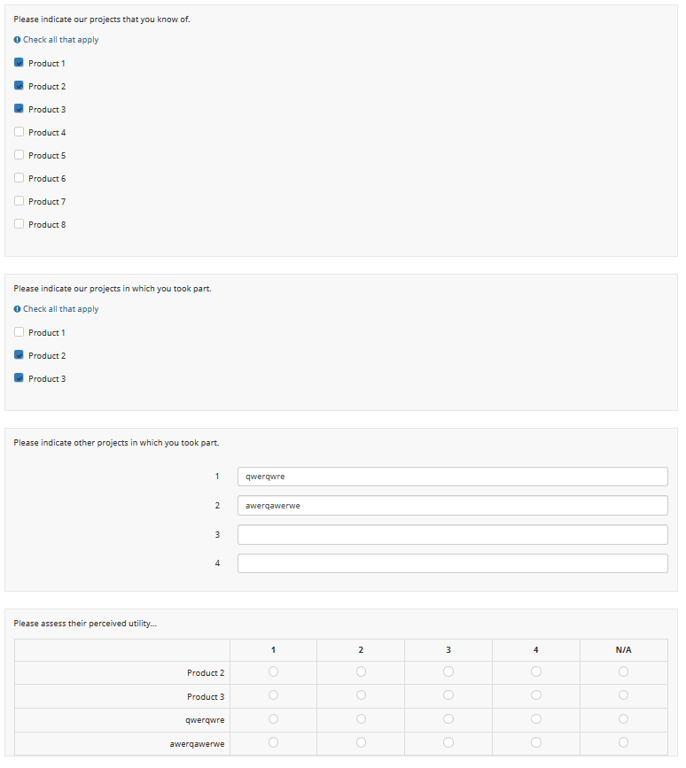 | Project 2 | Checkbox | Checkbox | Scale (radio button) : 1 2 3 4 | Checkbox |