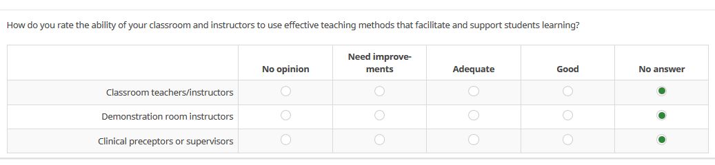 - a copy of a sample survey with an array-type question