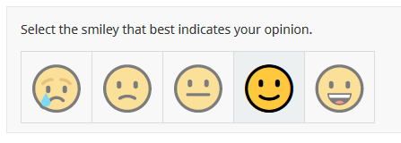 .smiley-list .smiley-item label { position: relative; display: block; border: 1px solid #DBDBDB; border-right: 0 none; height: auto; margin: 0; padding: 0; background: transparent 0 0 no-repeat; font-size: 0; } .smiley-list .smiley-item-5 label { border-right: 1px solid #DBDBDB; } .smiley-list .smiley-item input[type="radio"]:checked + label { background: #ECF0F1; } .smiley-list .smiley-item label::before { position: relative; left: auto; top: auto; display: block; width: auto; height: auto; margin: 5px; padding: 0; border: 0 none; border-radius: 0; background: transparent none; background-size: cover; opacity: 0.5; filter: alpha(opacity=50); text-align: center; font-size: 48px; } @media only screen and (max-width: 480px) { .smiley-list .smiley-item label::before { font-size: 36px; } } .smiley-list .smiley-item-1 label::before { content:"\1F622"; } .smiley-list .smiley-item-2 label::before { content:"\1F641"; } .smiley-list .smiley-item-3 label::before { content:"\1F610"; } .smiley-list .smiley-item-4 label::before { content:"\1F642"; } .smiley-list .smiley-item-5 label::before { content:"\1F600"; }