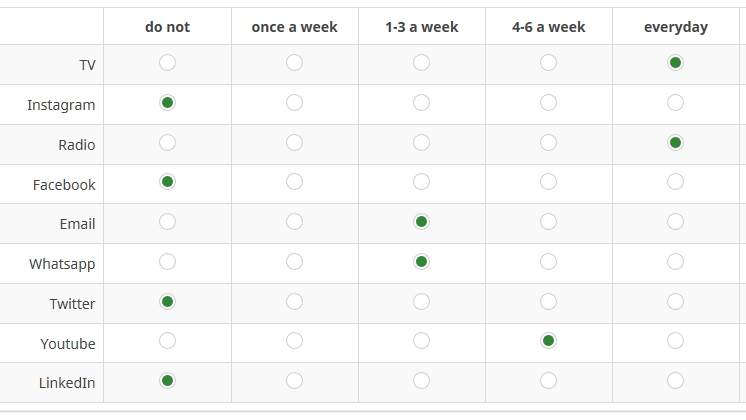 It's a bit confusing for the respondent to see the media vertically first, and horizontally next
