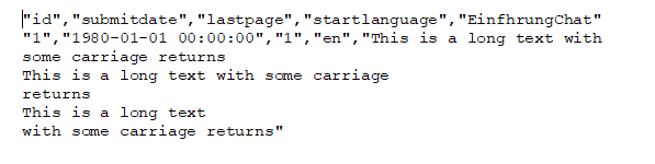 Sorry if duplicate but I did not find a solution yet. I have made a small pre-test in order to see whether all is in order before launching the survey. However, when I try to export responses I encounter a small problem that seems to come from multi-lined responses to open questions.
