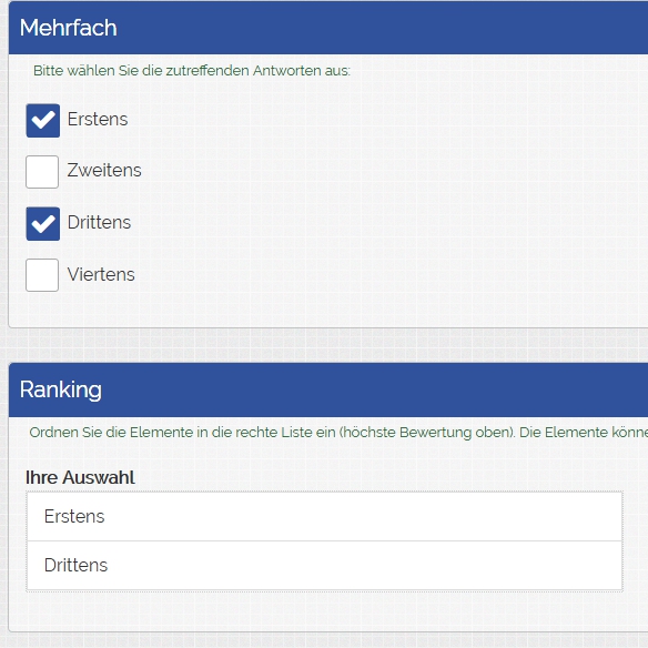 We have got a multiple answer question and want to use the chosen answers as the answers for the following question which is supposed to be a ranking selection. Unfortunately, we weren't able to find a solution.