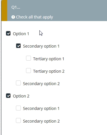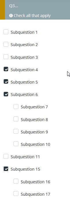 You should use the count-function, likeIs there any way so as S1Q1b and S1Q2 appear only when any subquestion of S1Q1a is checked?