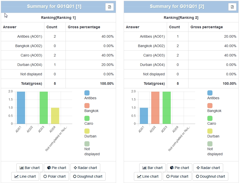 LimeSurvey is mainly a collecting tool; the statistics are thought for a rough overview during the survey.