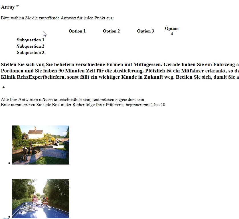 edit: the option "printable survey" does redirect me to a html page, but the questions with (array) imags are somehow all over the place (not sorted).