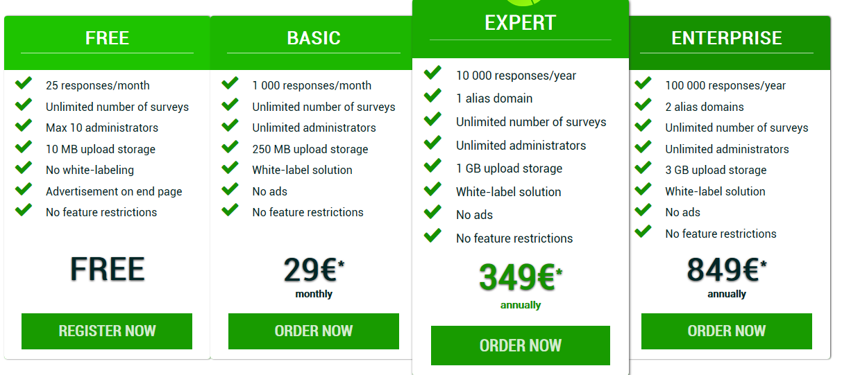 free package only allows 25 responses/month.