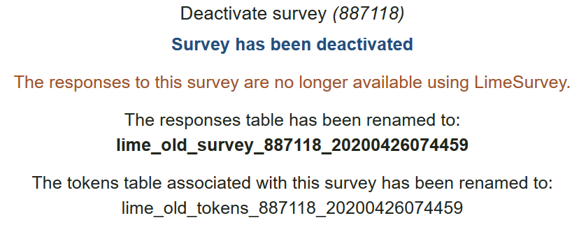 Even if you really deactivate the survey there are created these two tables "lime_old_..." and timestamp.