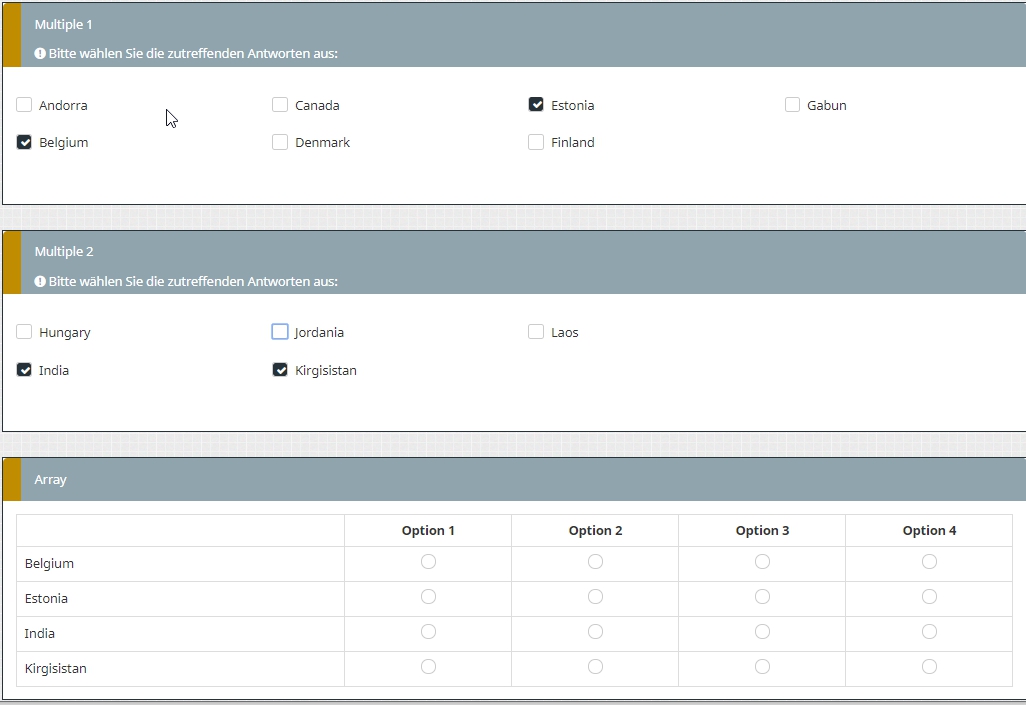 2. The subquestion codes of the previous question must not be equal.
