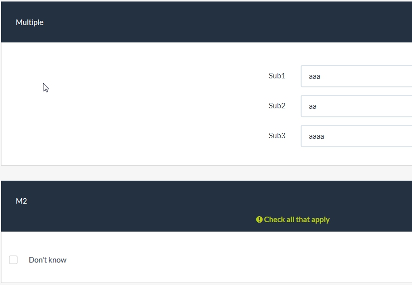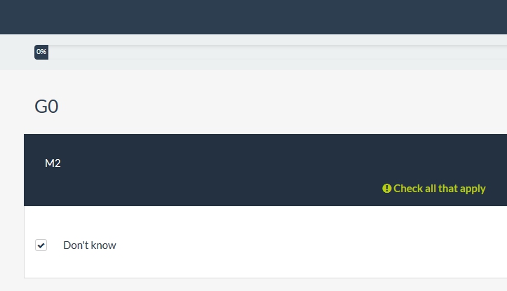 After this question I have a single multi-choice question with one checkbox labelled 'I don't know'.