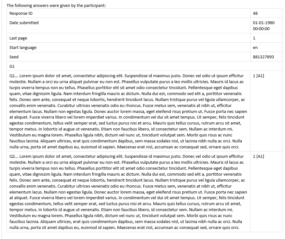 Maybe have a background color for the cells, or insert borders for the table, which would give the eye some better lead to where a result for a question starts and ends. Probably more helpful than top align the answers.