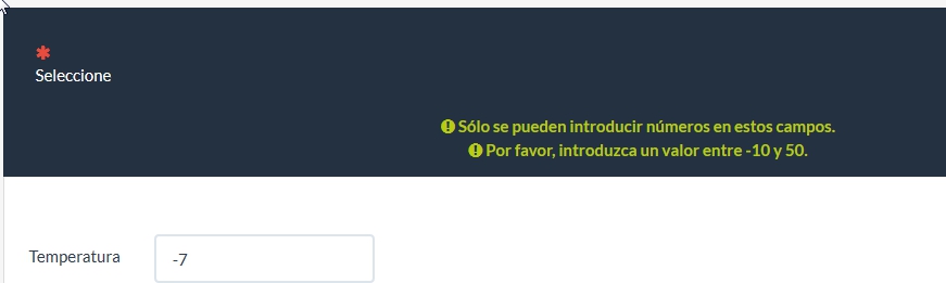 Hi people, Im trying to validate on multiple numerical input just one field to be able to insert just numbers between -10 and 50 with regex, but Im not be able to do it, can someone help me? I attach the lss survey file.