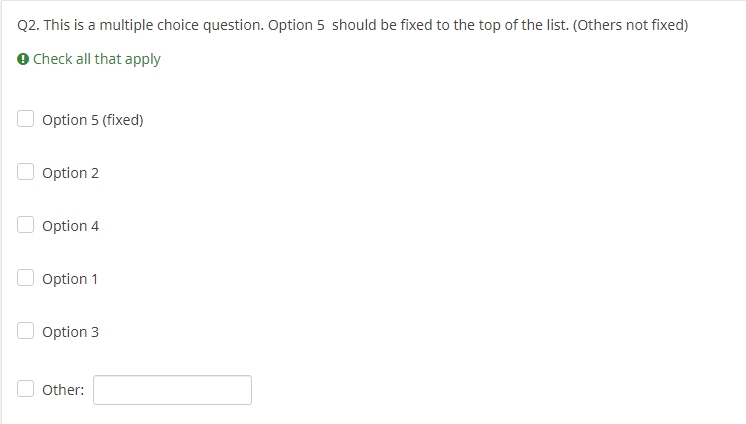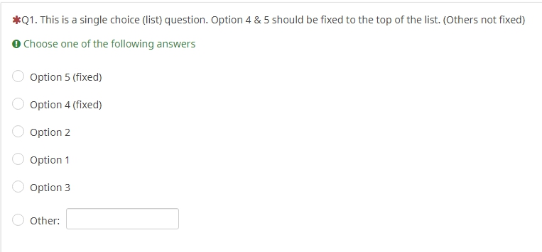 fixedIndex--;}// Handle "Other"if(otherFixed ==true&& $('#question'+qID+' input[type="text"]').length >0){var otherAnswer = $('#question'+qID+' input[type="text"]');var otherAnswerItem = $(otherAnswer ).closest('.answer-item');var otherAnswersList = $(otherAnswer ).closest('ul');