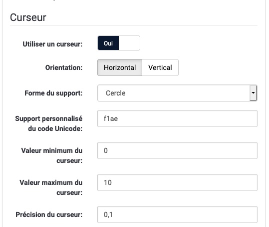 I try, in vain, to configure questions of the type "multiple numeric entries" with a cursor.