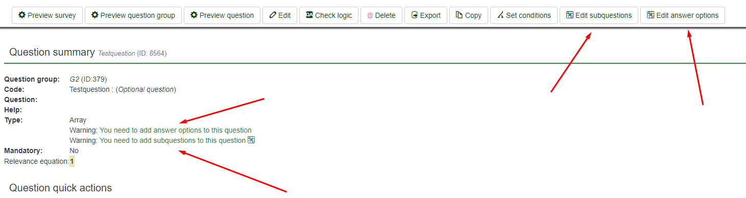 That is the subquestion (rows) screen. You also need to add answers (columns).