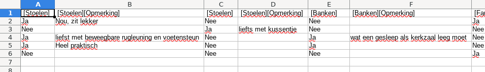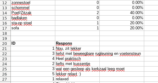 When I export statistics in Excel, I don't see the text respones in the same row of the chosen option: