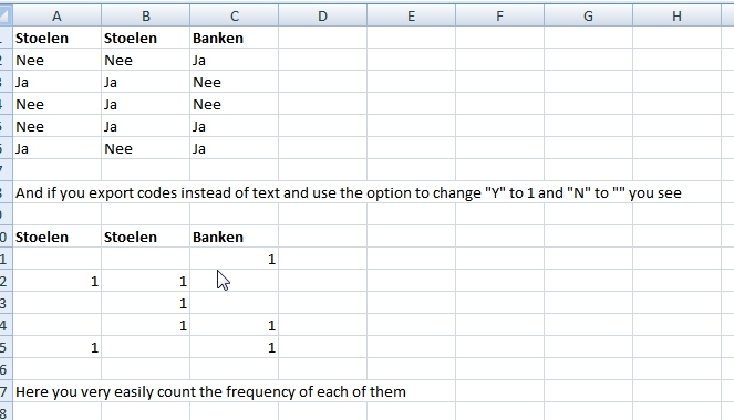I see the point, I tried to tilt the results in excel itself. But when I use 'statistics' in HTML, I see the results as I would like to see them in excel (see the original question). My survey looks like this: