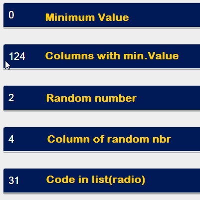 Now you find the minimum value in this row by (do not copy this without removing the line feeds)