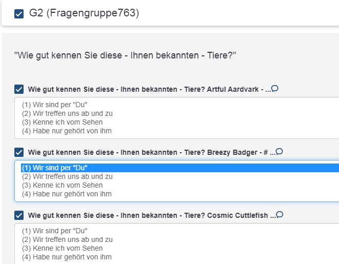 Always remember, this LimeSurvey statistics ist only to have a rough overview during fieldwork; it is not a replacement of a statistic tool like "SPSS", "PSPP", "R", "Jasp", "Janovi", even "Excel" or "OpenOffice", or whatever.