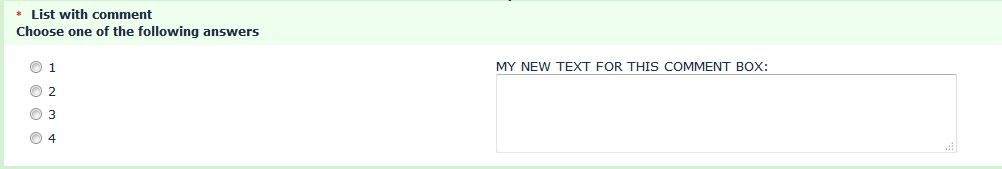 /* * LimeSurvey * Copyright (C) 2007 The LimeSurvey Project Team / Carsten Schmitz * All rights reserved. * License: GNU/GPL License v2 or later, see LICENSE.php * LimeSurvey is free software. This version may have been modified pursuant * to the GNU General Public License, and as distributed it includes or * is derivative of works licensed under the GNU General Public License or * other free or open source software licenses. * See COPYRIGHT.php for copyright notices and details. * * * Description: Javascript file for templates. Put JS-functions for your template here. * * * $Id:$ */ /* * The function focusFirst puts the Focus on the first non-hidden element in the Survey. * * Normally this is the first input field (the first answer). */ function focusFirst(Event) { $('#limesurvey :input:visible:enabled:first').focus(); } /* * The focusFirst function is added to the eventlistener, when the page is loaded. * * This can be used to start other functions on pageload as well. Just put it inside the 'ready' function block */ /* Uncomment below if you want to use the focusFirst function */ /* $(document).ready(function(){ focusFirst(); }); */ function correctPNG() // correctly handle PNG transparency in Win IE 5.5 & 6. { var arVersion = navigator.appVersion.split("MSIE") var version = parseFloat(arVersion[1]) if ((version >= 5.5) && (version<7) && (document.body.filters)) { for(var i=0; i<document.images.length; i++) { var img = document.images [i] var imgName = img.src.toUpperCase() if (imgName.substring(imgName.length-3, imgName.length) == "PNG") { var imgID = (img.id) ? "id='" + img.id + "' " : ""; var imgClass = (img.className) ? "class='" + img.className + "' " : ""; var imgTitle = (img.title) ? "title='" + img.title + "' " : "title='" + img.alt + "' "; var imgStyle = "display:inline-block;" + img.style.cssText; if (img.align == "left") imgStyle = "float:left;" + imgStyle; if (img.align == "right") imgStyle = "float:right;" + imgStyle; if (img.parentElement.href) imgStyle = "cursor:hand;" + imgStyle; var strNewHTML = "<span " + imgID + imgClass + imgTitle + " style=\"" + "width:" + img.width + "px; height:" + img.height + "px;" + imgStyle + ";" + "filter:progid:DXImageTransform.Microsoft.AlphaImageLoader" + "(src='" + img.src + "', sizingMethod='scale');\"></span>" img.outerHTML = strNewHTML i = i-1 } } } } /* * LimeSurvey * Copyright (C) 2007 The LimeSurvey Project Team / Carsten Schmitz * All rights reserved. * License: GNU/GPL License v2 or later, see LICENSE.php * LimeSurvey is free software. This version may have been modified pursuant * to the GNU General Public License, and as distributed it includes or * is derivative of works licensed under the GNU General Public License or * other free or open source software licenses. * See COPYRIGHT.php for copyright notices and details. * * * Description: Javascript file for templates. Put JS-functions for your template here. * * * $Id:$ */ /* * The function focusFirst puts the Focus on the first non-hidden element in the Survey. * * Normally this is the first input field (the first answer). */ function focusFirst(Event) { $('#limesurvey :input:visible:enabled:first').focus(); } /* * The focusFirst function is added to the eventlistener, when the page is loaded. * * This can be used to start other functions on pageload as well. Just put it inside the 'ready' function block */ /* Uncomment below if you want to use the focusFirst function */ /* $(document).ready(function(){ focusFirst(); }); */ function correctPNG() // correctly handle PNG transparency in Win IE 5.5 & 6. { var arVersion = navigator.appVersion.split("MSIE") var version = parseFloat(arVersion[1]) if ((version >= 5.5) && (version<7) && (document.body.filters)) { for(var i=0; i<document.images.length; i++) { { var imgID = (img.id) ? "id='" + img.id + "' " : ""; var imgClass = (img.className) ? "class='" + img.className + "' " : ""; var imgTitle = (img.title) ? "title='" + img.title + "' " : "title='" + img.alt + "' "; var imgStyle = "display:inline-block;" + img.style.cssText; if (img.align == "left") imgStyle = "float:left;" + imgStyle; if (img.align == "right") imgStyle = "float:right;" + imgStyle; if (img.parentElement.href) imgStyle = "cursor:hand;" + imgStyle; var strNewHTML = "<span " + imgID + imgClass + imgTitle + " style=\"" + "width:" + img.width + "px; height:" + img.height + "px;" + imgStyle + ";" + "filter:progid:DXImageTransform.Microsoft.AlphaImageLoader" + "(src='" + img.src + "', sizingMethod='scale');\"></span>" img.outerHTML = strNewHTML i = i-1 } } } } $(document).ready(function(){ $('.list-with-comment p.comment label').text('Your new label text here!'); });[/i]