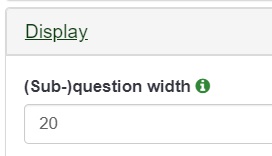 ', thisQuestion).append($('.subquestion-list .answers-list:eq(0) .answer-item:eq(7) *', thisQuestion)); // Some classes for presentation $('.question-text table:eq(0) input:radio', thisQuestion).closest('td').addClass('answer-item radio-item text-center radio'); $('.question-text table:eq(0) .radio-item label', thisQuestion).show(); // Click event on the table cells $('.question-text table:eq(0) .radio-item', thisQuestion).on('click', function(e) { $('input:radio', this).trigger('click'); }); $('.question-text table:eq(0) input:radio', thisQuestion).on('click', function(e) { e.stopPropagation(); }); // Clean-up styles $('.answer-container', thisQuestion).hide(); $('.question-text table:eq(0) .label-text', thisQuestion).remove(); $('.question-text table:eq(0) .radio-text', thisQuestion).css({ 'cursor': 'pointer' }); $('td.radio', thisQuestion).css({ 'display': 'table-cell', 'padding': '5px' }); });</script>