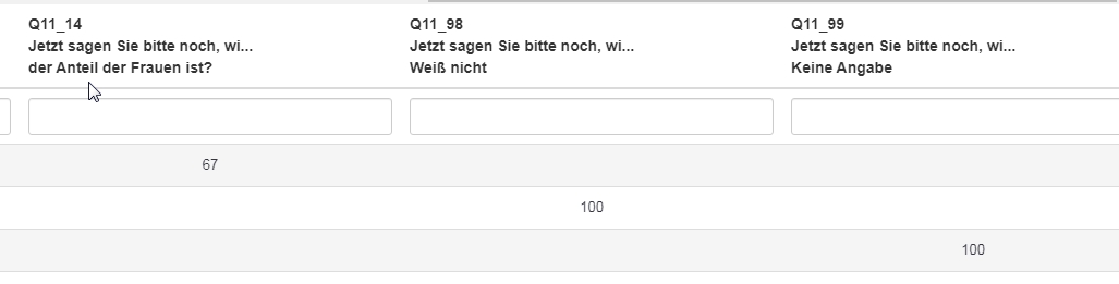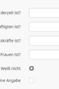 Then, why would you provide a sample survey with the wrong number of rows?Furthermore with "the last two items" I meant that I wanted to split last item in my original example, so in the end I would have 4 items with numeric input fields and two items with checkboxes ("Weiß nicht" and "Keine Angabe").