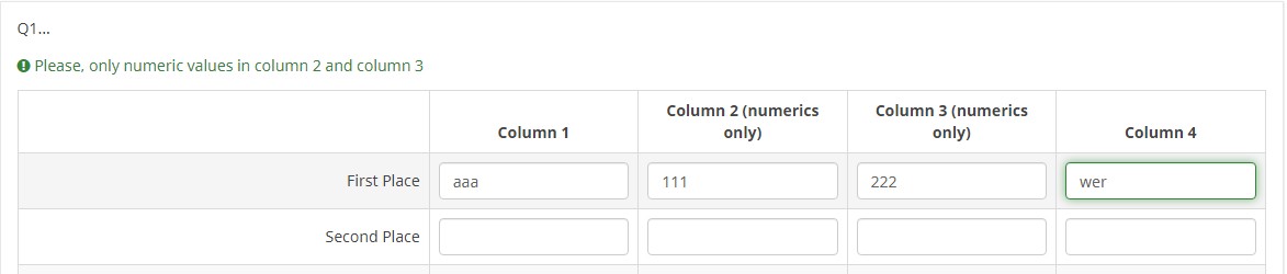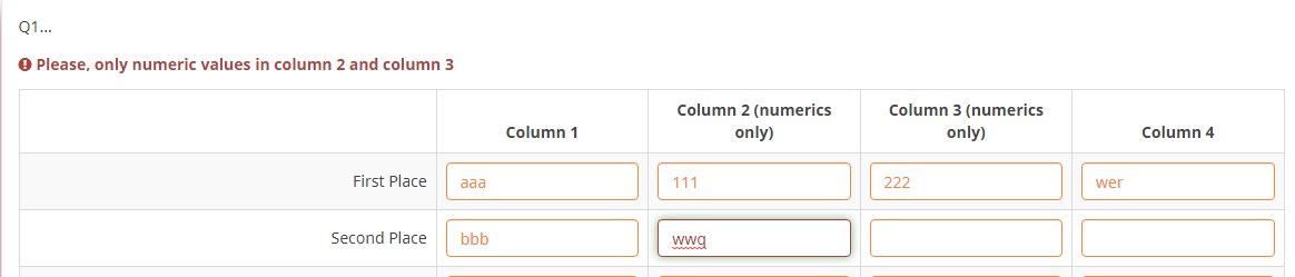 "Please, enter only numeric values in column 2 and column 3". Or whatever you like.
