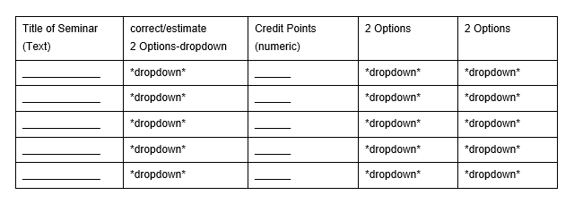 It has 5 columns and several rows(maybe with the option to hide extra rows and only show them if all above are filled). The columns should display the following: