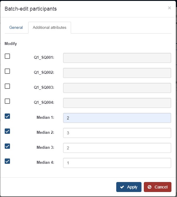 In the participant table I create 8 additional attributes (my example has only 4 questions)