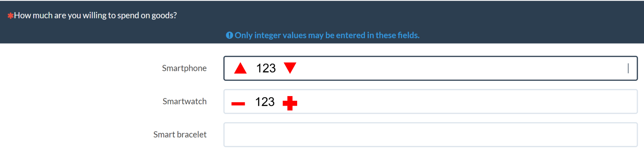 in Q1, Smartphone is 1500, in Q2 the default will inherit Q1's answer, but I also can give a value 1000 (or other value) for Smartphone in Q2.