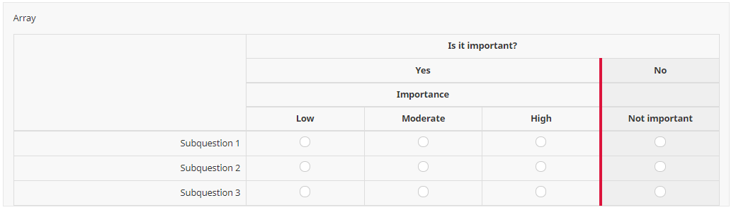E.g. two arrays with subquestion relevance.