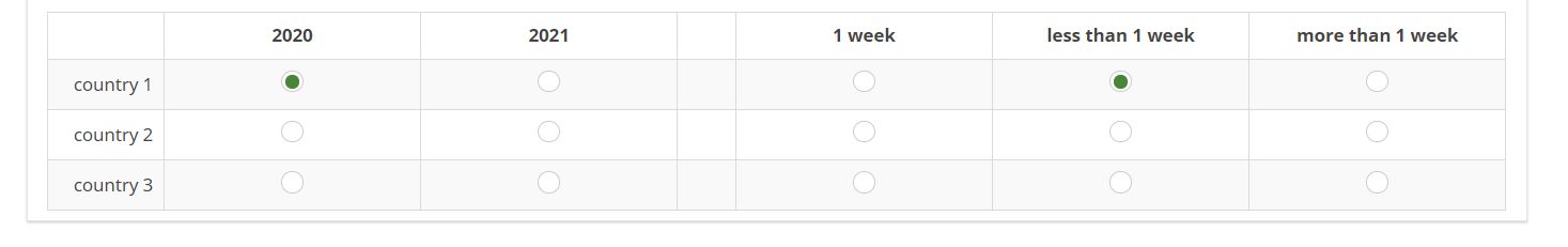 The first row ist displayed if the number of countries is greater than 0