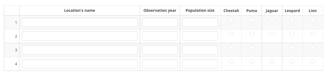 Probably the most common mistake ever made when it comes to digitalizing questionnaires.As we need to create an online survey that corresponds as much as we can to the format used on paper (not editable),