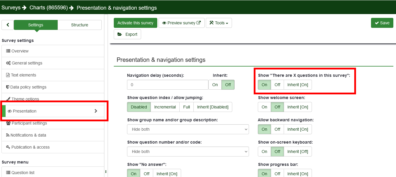 Is it possibly to either not include the hidden question count iso that: "There are 7 questions in this survey", appears as "There are 6 questions in this survey" or to suppress this statement all together?