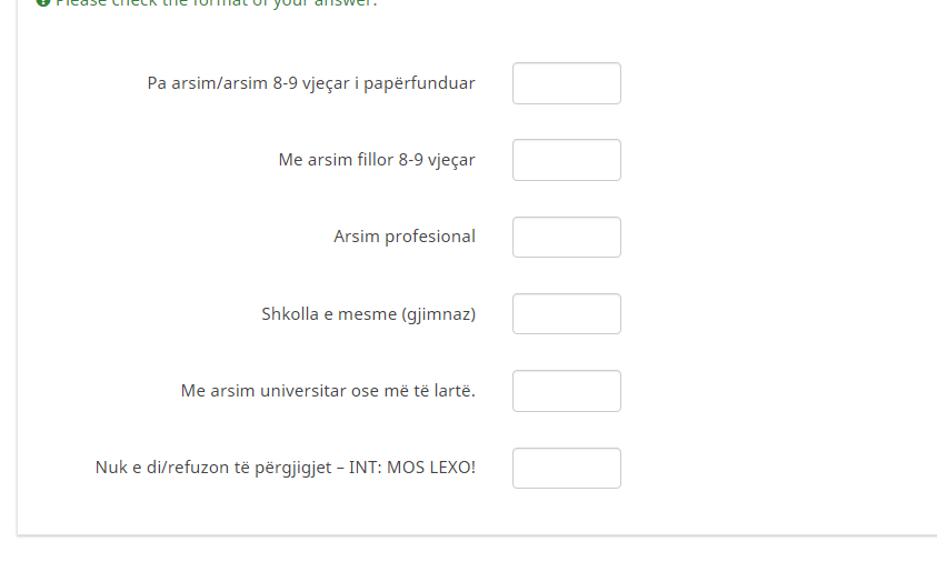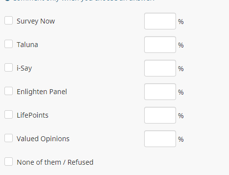 <script type="text/javascript" charset="utf-8"> $(document).ready(function() { var thisQuestion = $('#question{QID}'); // Remove some text inputs $('.checkbox-text-item:eq(6) .comment-item', thisQuestion).remove(); }); </script> <script type="text/javascript" charset="utf-8"> $(document).on('ready pjax:scriptcomplete',function(){ // Insert comment suffix var suffixText = '%'; $('#question{QID} .comment-item').append('<span class="comment-suffix">'+suffixText+'</span>'); }); </script>