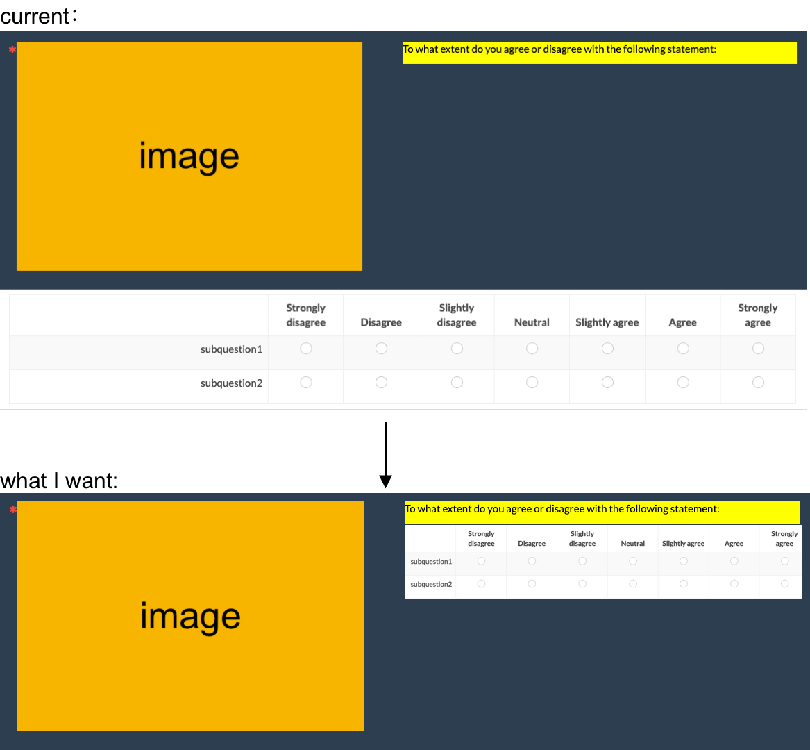 Is there a way to move the answer options of an array to the right of the question(an image)?