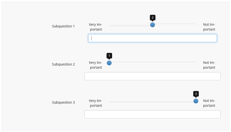 I was wondering if anyone knew if it was possible to have a slider question and right next to each sub-question (or even right below them) have a text question (ie. a place where individuals can write their comments)?