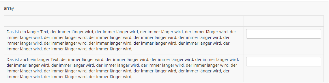 <script type="text/javascript" charset="utf-8"> $(document).ready(function() { var qID = {QID}; $('#question'+qID+' .subquestions-list col').css({ 'width':'auto' }); $('#question'+qID+' .subquestions-list thead td').css({ 'width':'75%' }); $('#question'+qID+' .subquestions-list thead th:eq(0)').css({ 'width':'25%' }); $('#question'+qID+' .subquestions-list input[type="text"]').css({ 'width':'90%' }); }); </script>