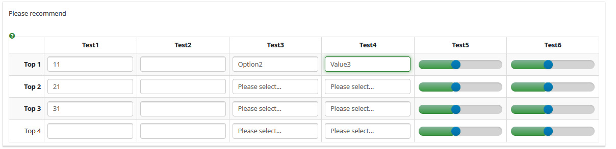// The column to receive the sliders var sliderColumn = 5; ... var sliderColumn = 6;