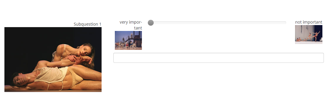 Here you see images in all parts of a slider question - and additionally your request for a text input.