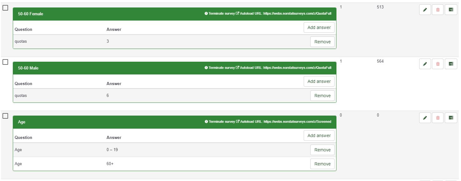 The same age group is either in quota group "1" or "4", "2" or "5", -> X or X+3 depending on sex.