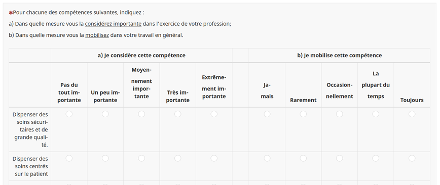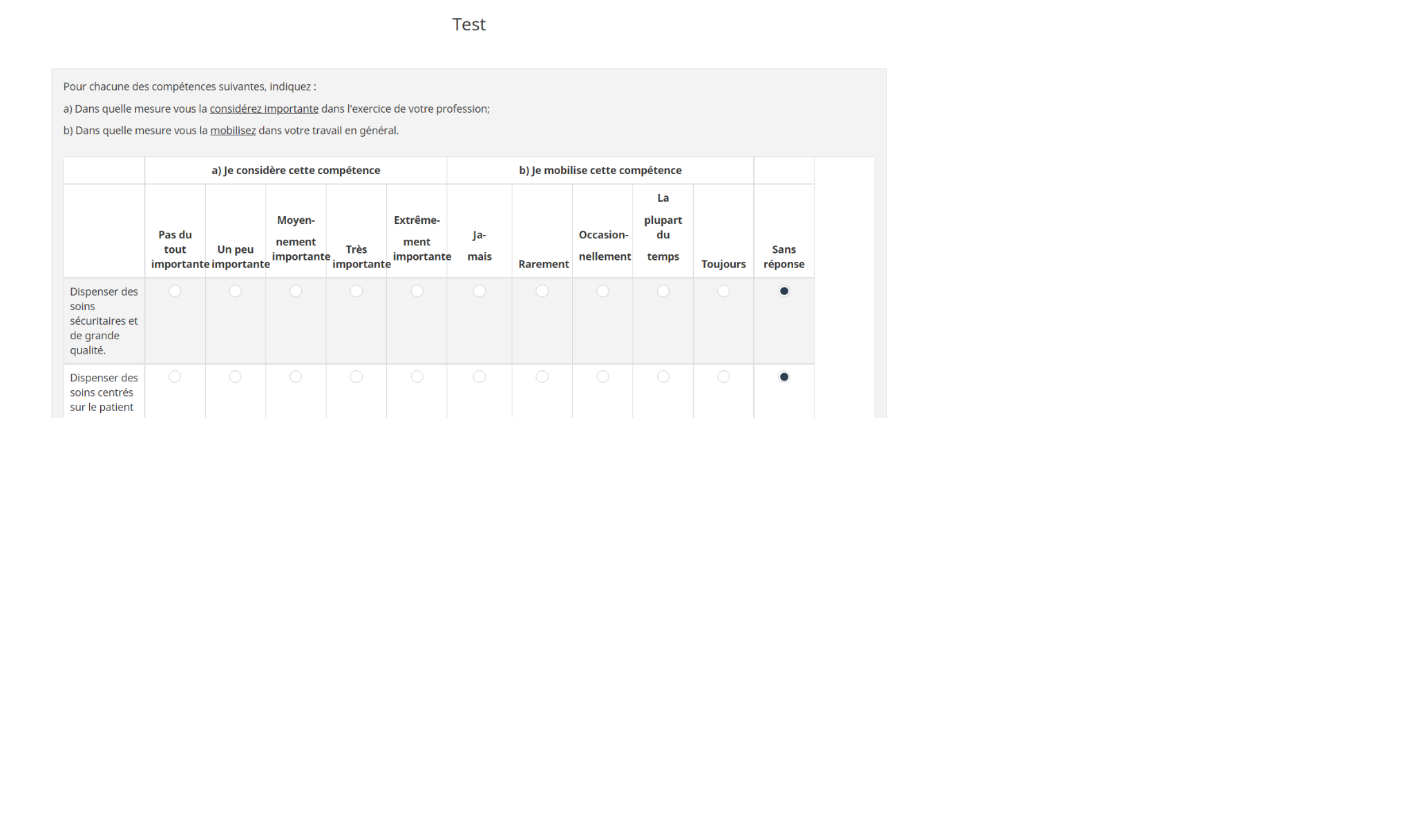 Hello! In an "Array dual scale" question, I'm looking to equalize the width of the columns of answer choices in the table. From my understanding they should divide evenly, but as you can see, the "Jamais" column is smaller for some reason. Do you have any idea how I can fix this?