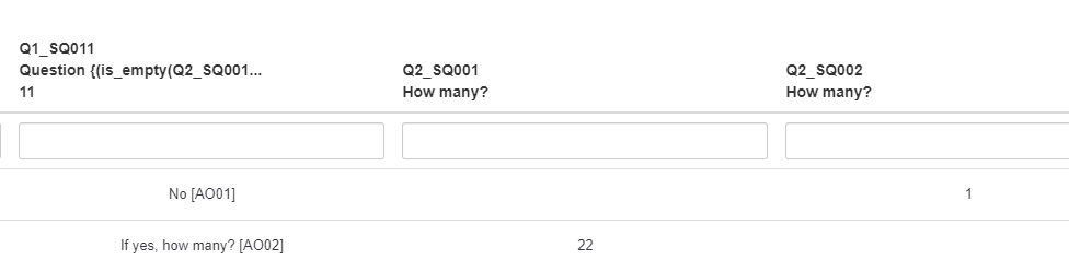 Hi all, I've got an array type question with implemented textboxes. Wondering how to put in a question validation to restrict values to be greater than 0 if they type into the textbox. I tried using the below validation in the subquestion validation in the 2nd question but it seems to not restrict any values. If I use it in the 1st question, it seems to make it mandatory to type in all fields before the participant can move on.