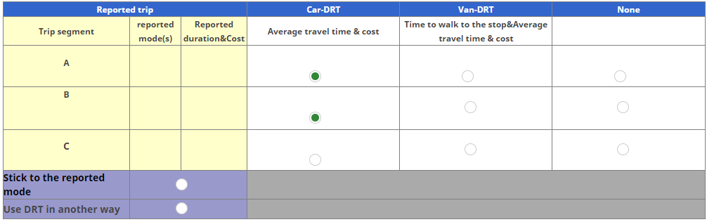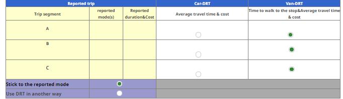 This means, either Car-DRT or Van-DRT for the whole trip or parts?only select one option