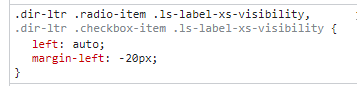 <style> .dir-ltr .radio-item .ls-label-xs-visibility, .dir-ltr .checkbox-item .ls-label-xs-visibility { left: auto; margin-left: 0px; } </style>