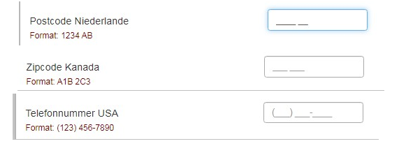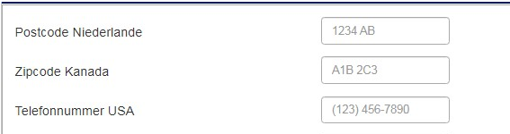 a) Show a placeholder in each input box to indicate the format of input
