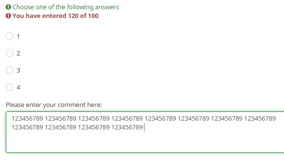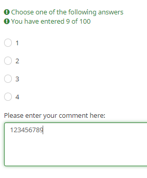 You have entered {strlen(MR06_comment.NAOK)} of 100 characters. However, as stated, it doesn't say "You have entered x of 100 characters"; it just says that one of the questions hasn't been completed correctly.