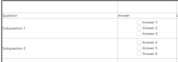 These are radio buttons, so how can you select more than one in each box?only be allowed to select 1 answer per box, so they would be allowed to make 6 choices max