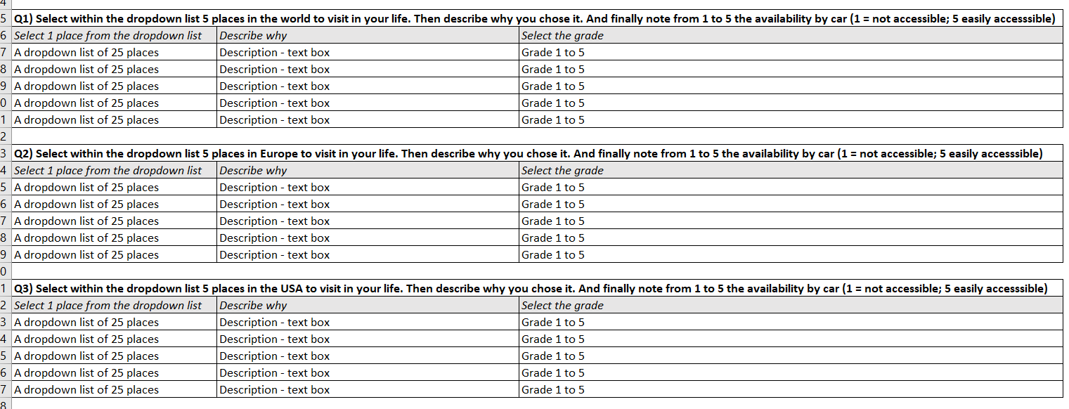 While I don't think that this is a good way to ask these questions" => Why it is not a good way to ask questions? What do you recommend? The picture is only an illustration of what I need, but the logic of my Q&A is the same. I do not see any other option