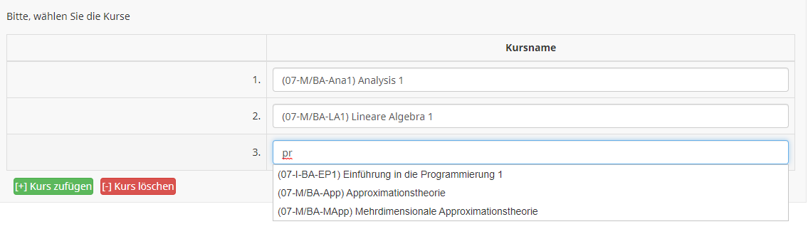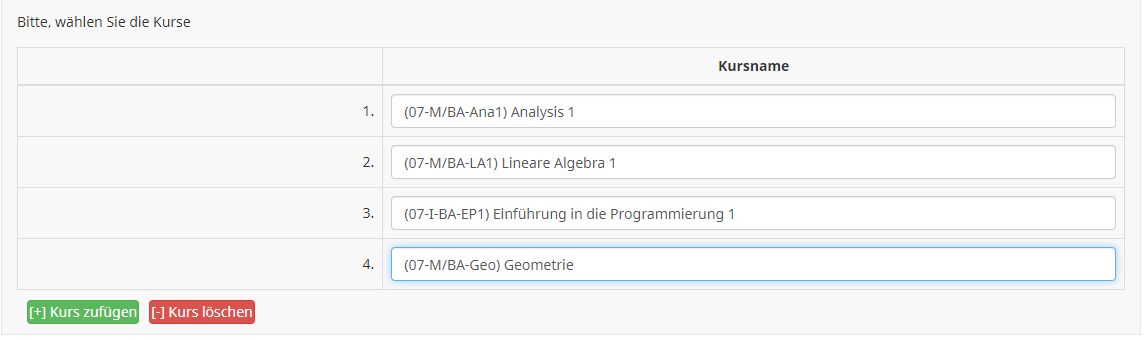 If you make them write the name of the course they want to evaluate, you will create chaos for your analysis, because each course could be evaluated at any position within the questionnaire (besides de fact that they probably all have different "versions" of the name of the course).